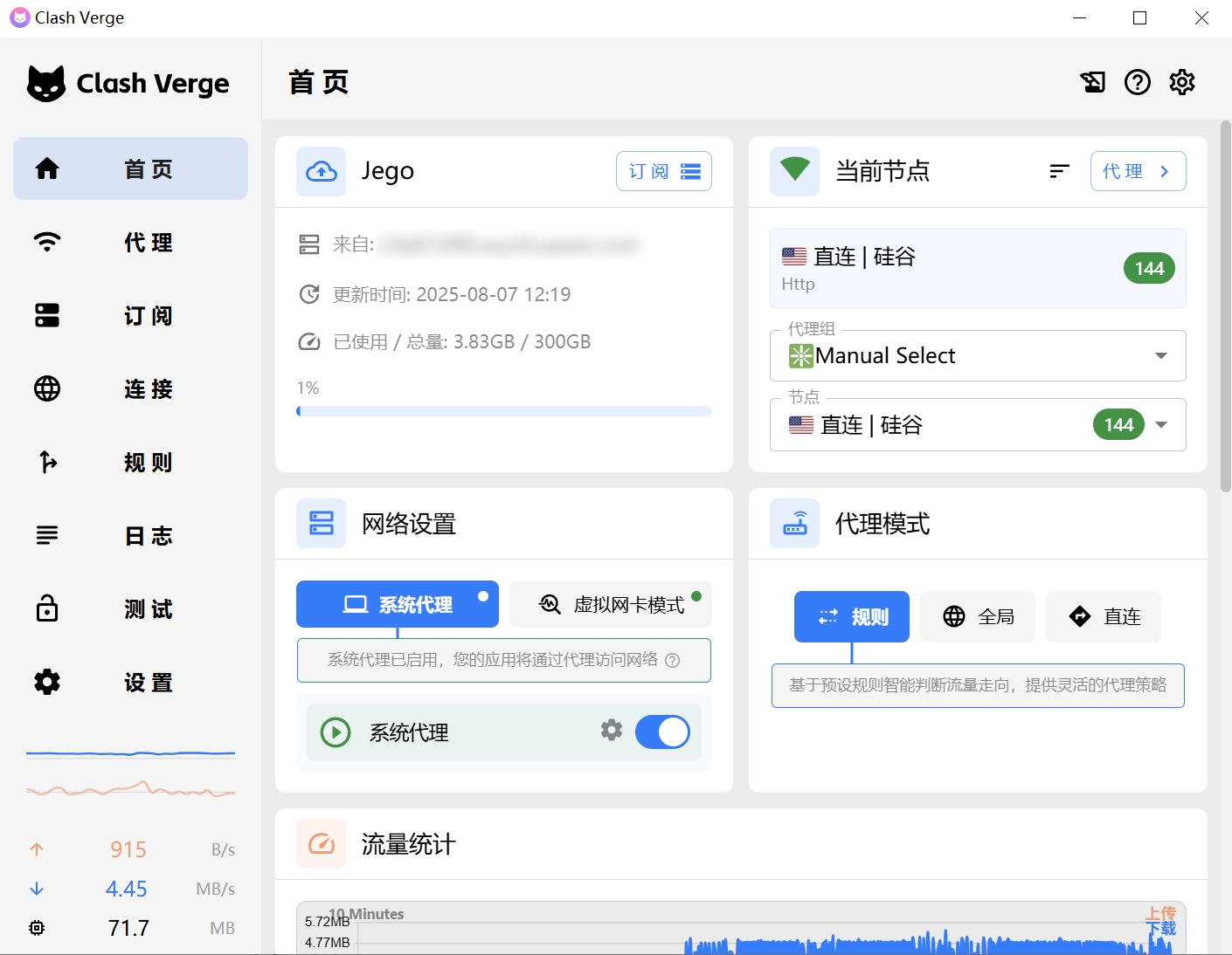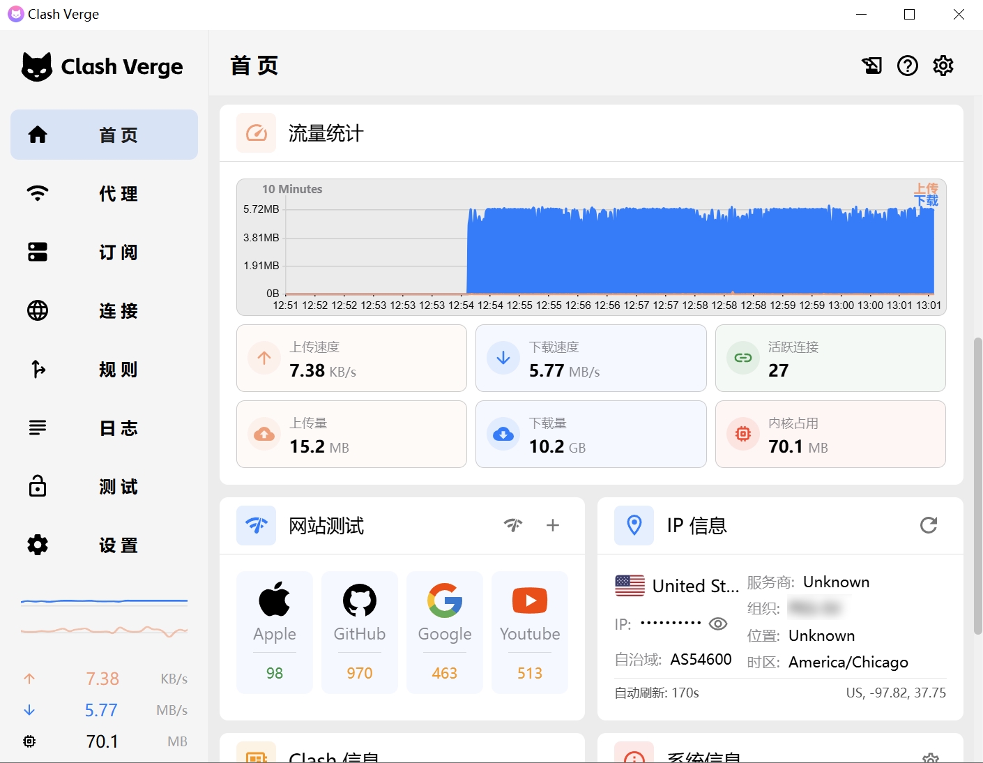 Clash Verge Rev是Clash Verge 的延续,一款基于 Tauri 的开发的Mihomo(原ClashMeta)内核的多平台代理客户端,并支持切换 Alpha 版本内核。简洁美观的用户界面,支持自定义主题颜色、代理组/托盘图标以及 CSS Injection。配置文件管理和增强(Merge 和 Script),配置文件语法提示。系统代理和守卫、TUN(虚拟网卡) 模式。可视化节点和规则编辑。WebDav 配置备份和同步。