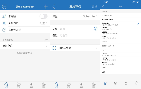打开 **Shadowrocket**，点击右上&#x89D2;**＋**，类型选择 “**Subscribe** (订阅)”。 粘贴订阅链接至 URL 后，点击右上角 “**完成**”，Shadowrocket 将从订阅链接获取节点。