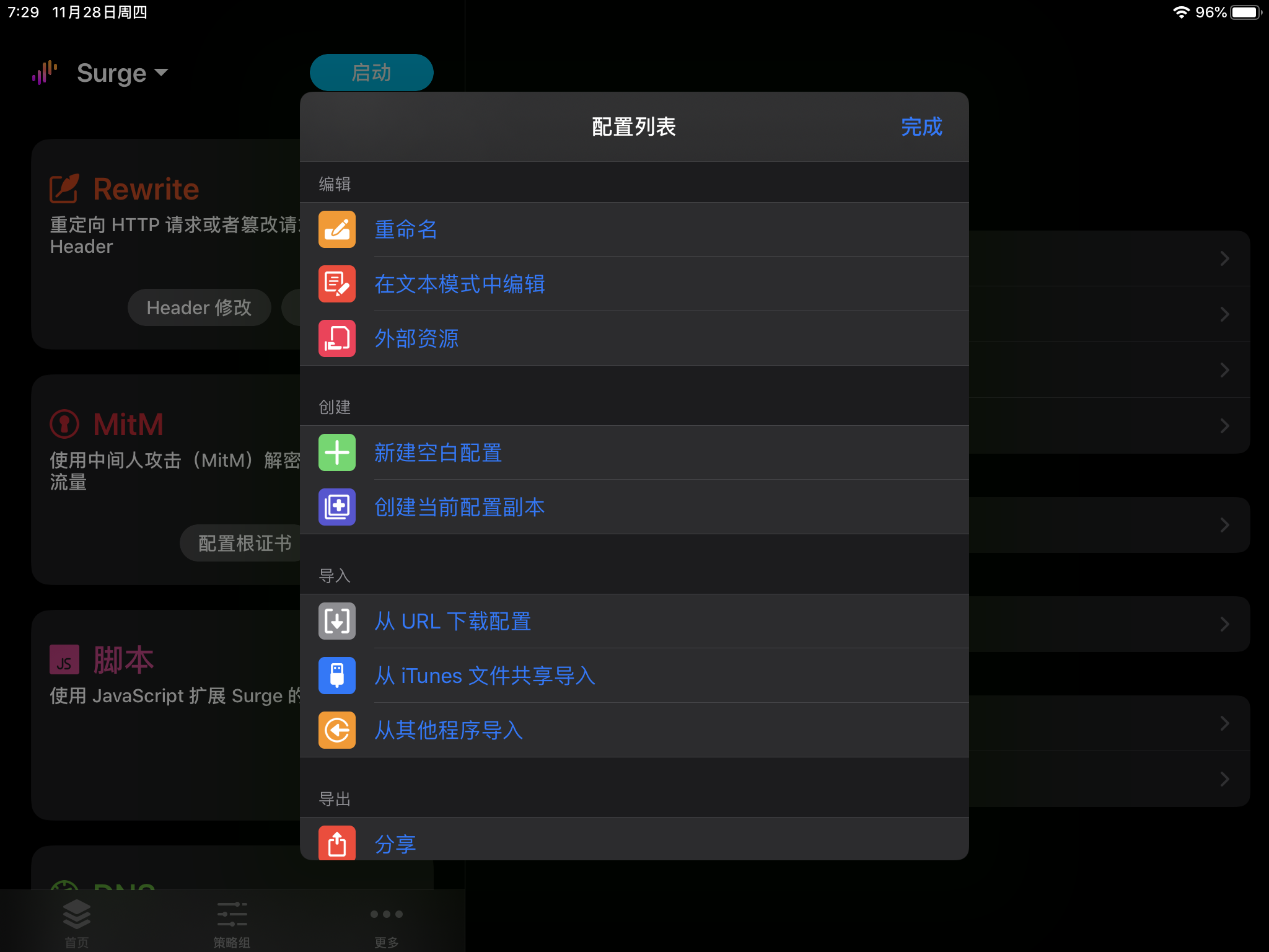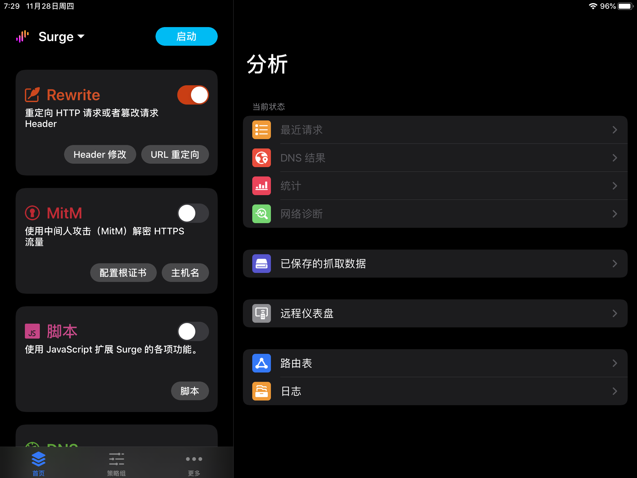 Surge 的网络代理功能需要解锁 Pro 授权，可通过 [AppStore 内购](https://apps.apple.com/us/app/surge-3/id1442620678?ls=1)或访问其[官网](https://nssurge.com/)进行购买。